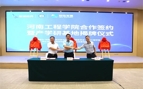 會上,河南工程學(xué)院、管城經(jīng)濟技術(shù)開發(fā)區(qū)管理委員會、河南鄭地產(chǎn)城融合建設(shè)發(fā)展有限公司共同簽署產(chǎn)學(xué)研合作協(xié)議,并現(xiàn)場為河南工程學(xué)院校外實習(xí)基地、產(chǎn)學(xué)研合作基地、就業(yè)基地揭牌。