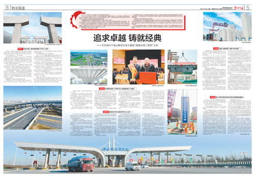 當(dāng)日上午,從在北京召開的“2022—2023年度國家優(yōu)質(zhì)工程獎總結(jié)表彰大會”上傳來喜訊,京港澳高速、省道102與四港聯(lián)動大道組合式互通立交工程榮獲“國家優(yōu)質(zhì)工程獎”。這是鄭州市國省干線公路項目首次獲得該獎項,標(biāo)志著我市公路建設(shè)高質(zhì)量發(fā)展取得新的突破。