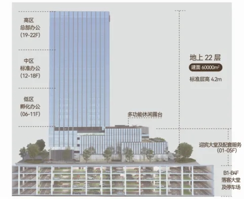 地下4層,地上22層,層高4.2米