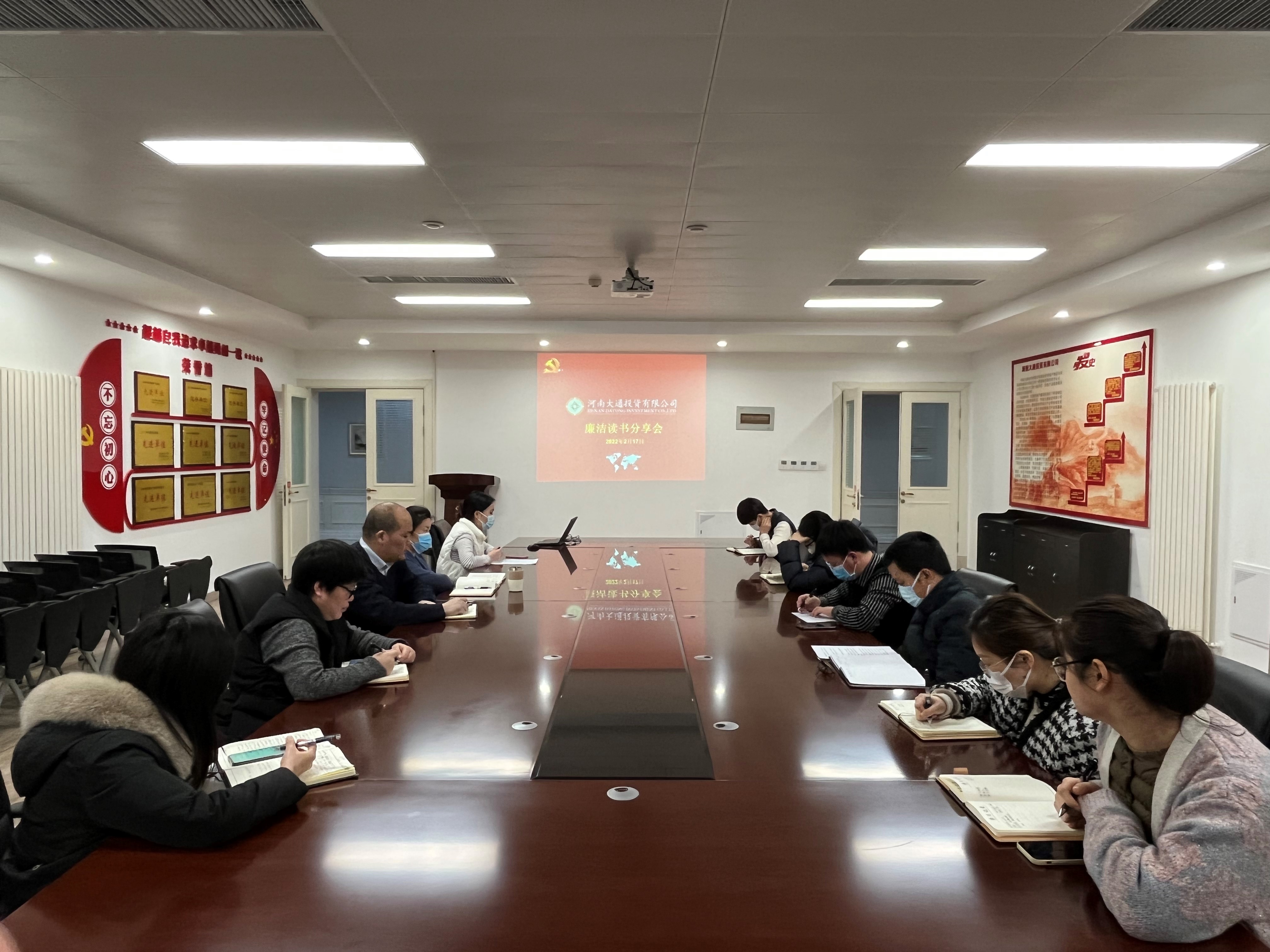 為深入學(xué)習(xí)貫徹習(xí)近平新時(shí)代中國(guó)特色社會(huì)主義思想,增強(qiáng)“四個(gè)意識(shí)”,堅(jiān)定“四個(gè)自信”,做到“兩個(gè)維護(hù)”,提高廣大干部職工紀(jì)律意識(shí),深入推進(jìn)黨風(fēng)廉政教育的制度化和常態(tài)化,2月17日下午,大通公司在會(huì)議室組織開(kāi)展廉潔讀書(shū)分享會(huì)活動(dòng)。