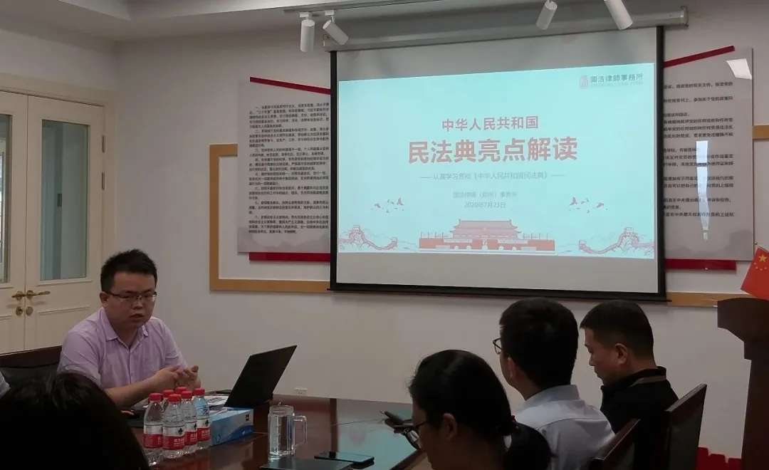 本次培訓(xùn)特邀公司法律顧問、國浩律師(鄭州)事務(wù)所郝斯展律師為大家進行講授。培訓(xùn)伊始,郝律師首先向參訓(xùn)人員詳細介紹了《民法典》產(chǎn)生的背景、基本組成內(nèi)容以及頒布的重要意義,接著重點對《民法典》中的總則、合同編、物權(quán)編、婚姻家庭編等亮點內(nèi)容進行逐一解讀。為方便參訓(xùn)人員理解,郝律師用發(fā)生在身邊的實際案例對法律條款進行形象解釋。案例中有如何結(jié)合今年疫情防控工作有效推動監(jiān)護制度進一步完善的、有擔(dān)保人未明確書寫承擔(dān)擔(dān)保責(zé)任形式時如何認定的、還有一度困擾公眾的“扶不扶”、“救不救”問題等,通過結(jié)合一樁樁、一件件實際案例的講解,讓參訓(xùn)人員進一步深刻了解了此次《民法典》的重大意義所在。比如《民法典》將“見義勇為免責(zé)”通過法律規(guī)定的形式予以確定,讓中華民族傳統(tǒng)美德能得到更好的發(fā)揚;對發(fā)生高空拋物墜物造成他人損害情形時,如果不能明確責(zé)任人的,該樓業(yè)主都有可能要被追償責(zé)任,為受害人提供了“兜底”保障,同時為補償人進一步追償提供了法律依據(jù)……